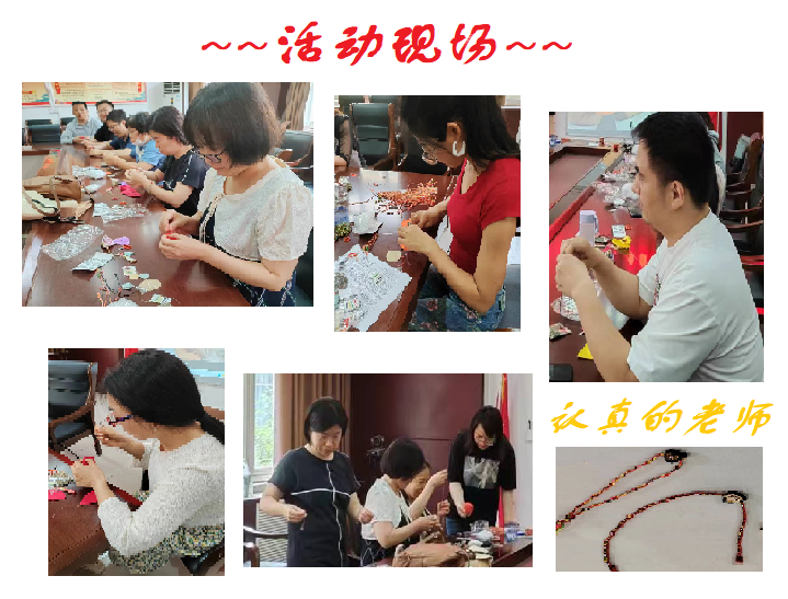 学院分工会为各位老师准备了香囊和五彩手绳,组织福果香囊diy活动,各位教工充分发挥想象力,相互帮忙分享经验,一针一线把对家人祛病除秽,平安康健的美好祝愿都编织在作品中,活动现场气氛热烈。