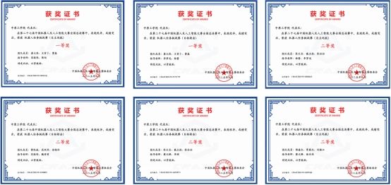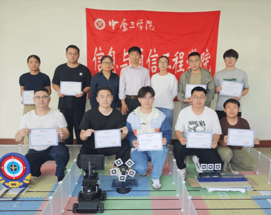 在【机器人任务挑战赛】目标射击中,龚大伟、王寅卜、曹森队荣获国家一等奖,指导教师为李梦龙、杨蕾;张天宝、戴玉林、张壮壮队荣获国家二等奖,指导教师为蔡文静、李渊;曹凯旋、武双洋、安艳玲队荣获国家二等奖,指导教师为宋晓炜、魏苗苗。