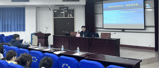 吴校长以“低空经济的过去、现在和未来”为题,从低空经济的提出、发展及未来发展展开汇报。提到低空经济是新质生产力的典型代表,属于新能源、5G/6G 通信、人工智能等新兴学科交叉融合的领域。他以民航人的专业视角,从技术和管理融合创新的角度,介绍了低空经济的概念和应用场景,分析了这波低空经济热形成的原因,最后介绍未来低空空管系统和安全管控关键技术。交流环节,吴校长和与会教师和学生进行了深入的讨论,对提出的问题进行了耐心和细致的解答。