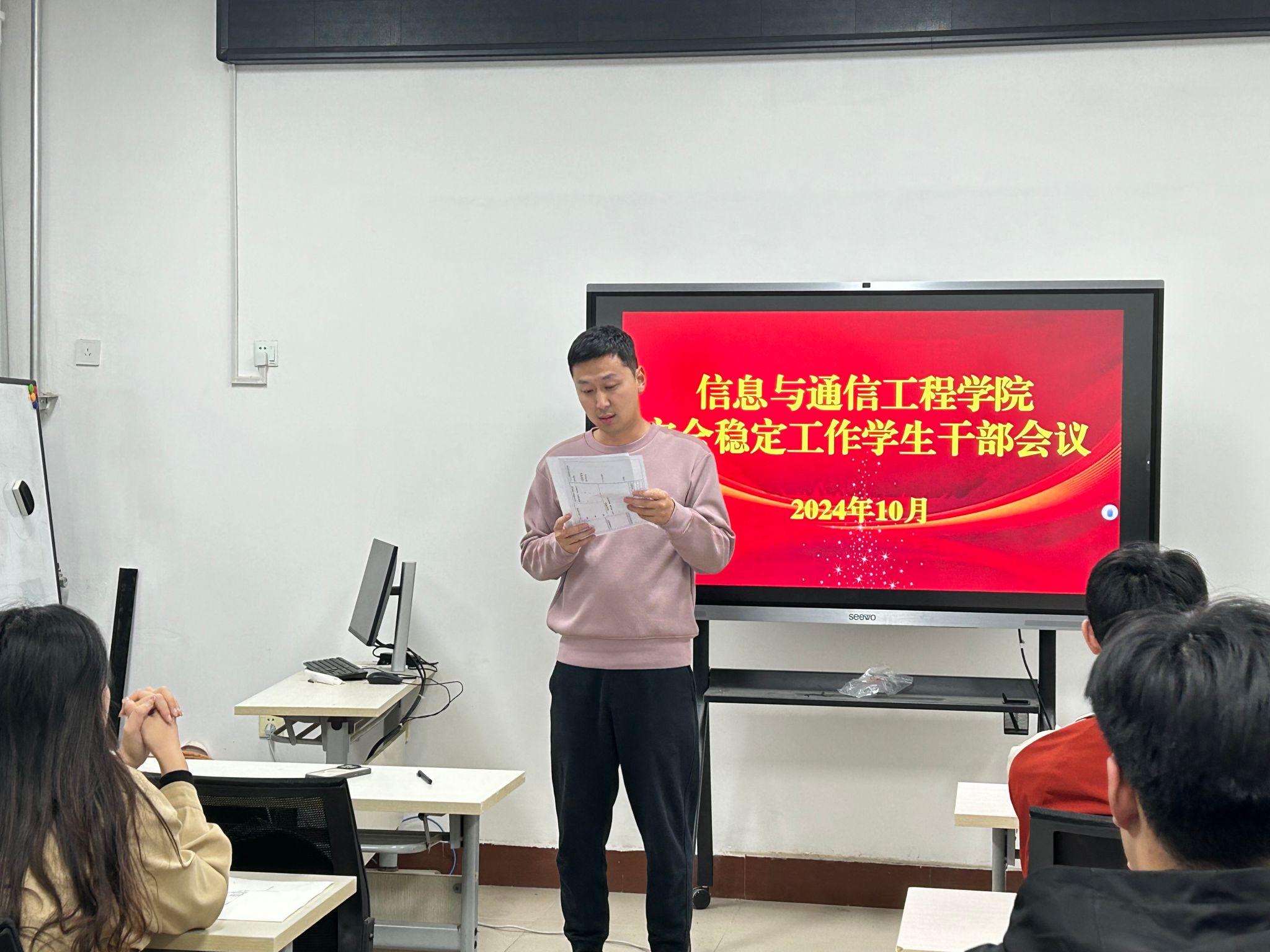 在龙湖校区10号楼311教室召开安全稳定工作学生干部会议,全体专兼职辅导员、各班级班长、团支书、生活心理委员参加会议。
