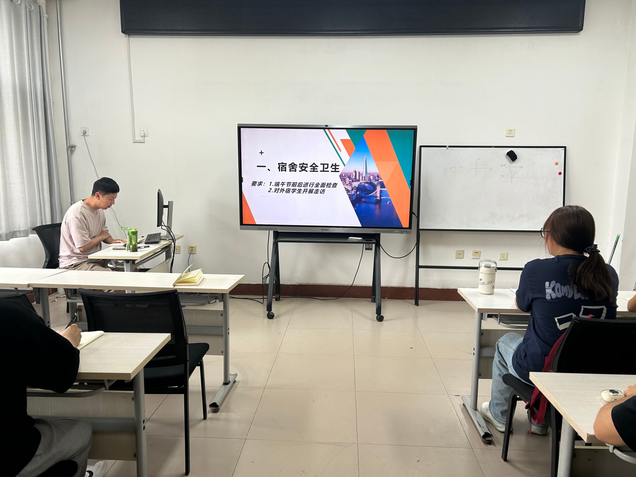 在10号楼311教室召开学生宿舍安全稳定工作会议。学工办主任魏晓宇,各班级学生干部参会。