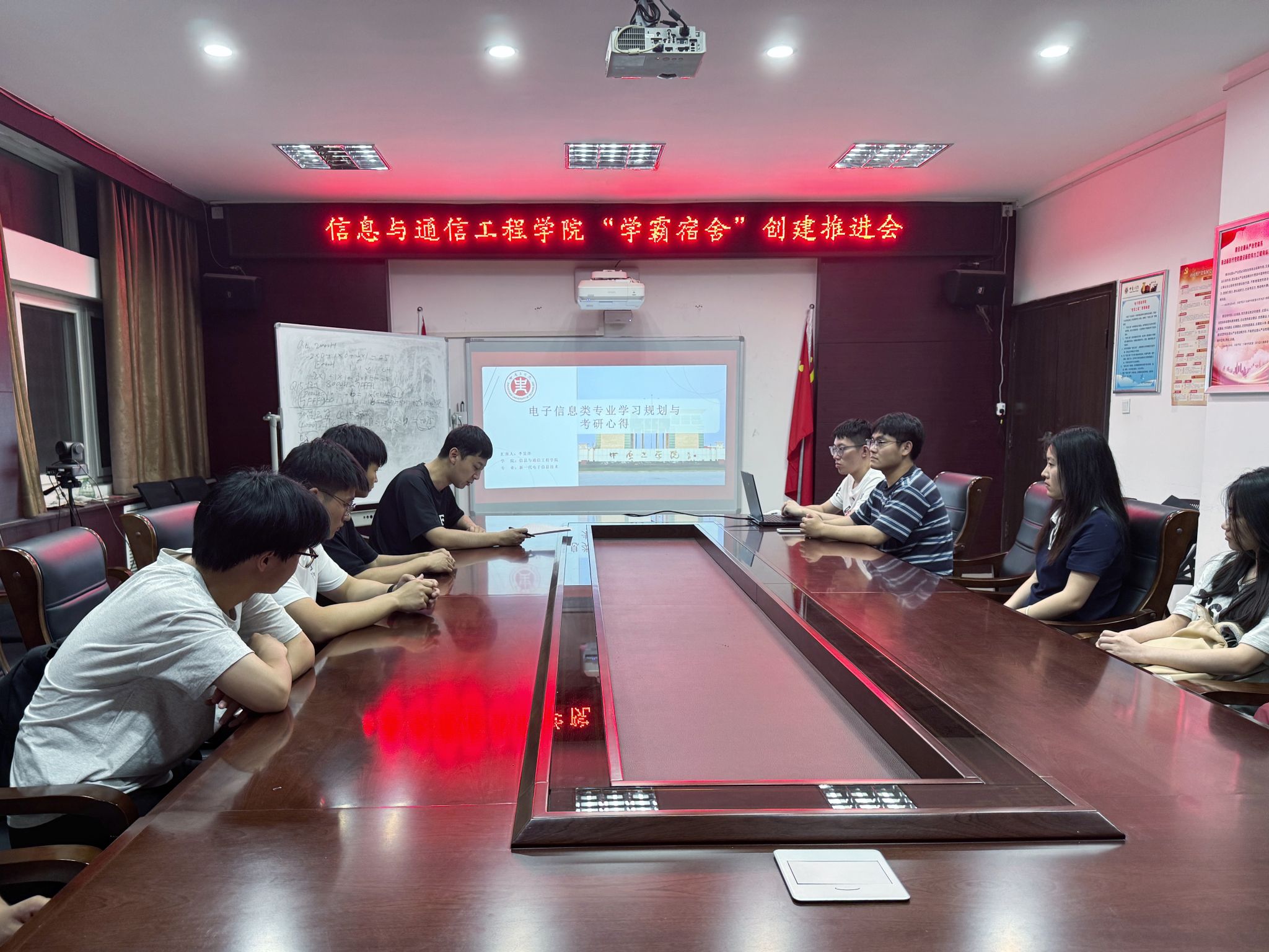 在10号楼218会议室举办“学霸宿舍”创建工作推进会议。本次会议由学工办魏晓宇老师主持,24级研究生代表及各参评宿舍成员参加。