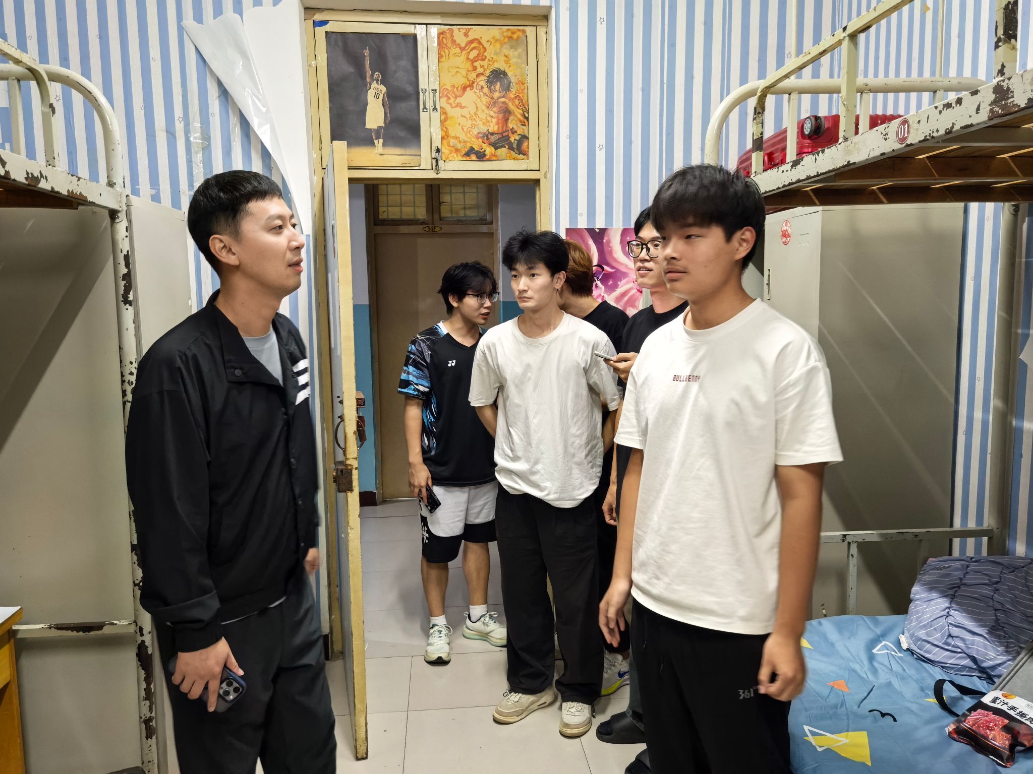 傍晚时分,迎新工作暂告一段落,但关怀仍在延续。新生辅导员带领各班级班主任助理走访新生宿舍,逐一查看住宿环境,了解学生需求。“宿舍空调是否制冷?”“生活用品是否齐全?”辅导员们细致询问,并提醒新生注意用电安全、防范诈骗,鼓励他们积极参与学院活动,尽快融入集体。