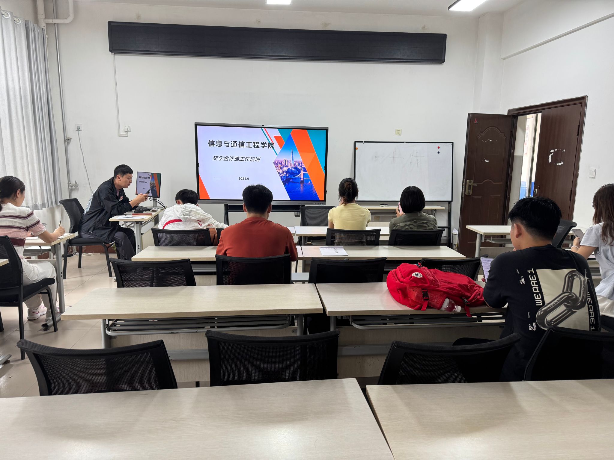 在10号楼311教室组织召开奖学金工作专题培训会。学院全体辅导员及各年级学生干部代表参加,会议由魏晓宇老师主讲。