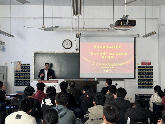 在龙湖校区举办“校友大讲堂”职业生涯规划指导讲座。测控2003级校友、职业生涯规划校外指导导师、新乡北方车辆仪表有限公司总经理范光华,学院党总支书记邹海林、执行院长李春雷、副书记王辉、工会主席路向阳出席,全体辅导员以及70余名学生代表参加本次活动。