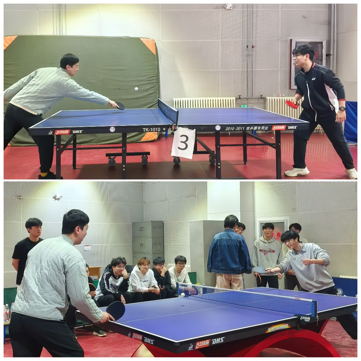 本次比赛由学生工作办公室主办,学工办助理团承办。比赛为团体赛形式,设置男子单打,女子单打两个项目。赛场上,各班级运动员精神抖擞,发球抢攻、接球、扣杀、弧圈球等技术动作行云流水,赢得现场的同学们阵阵喝彩。