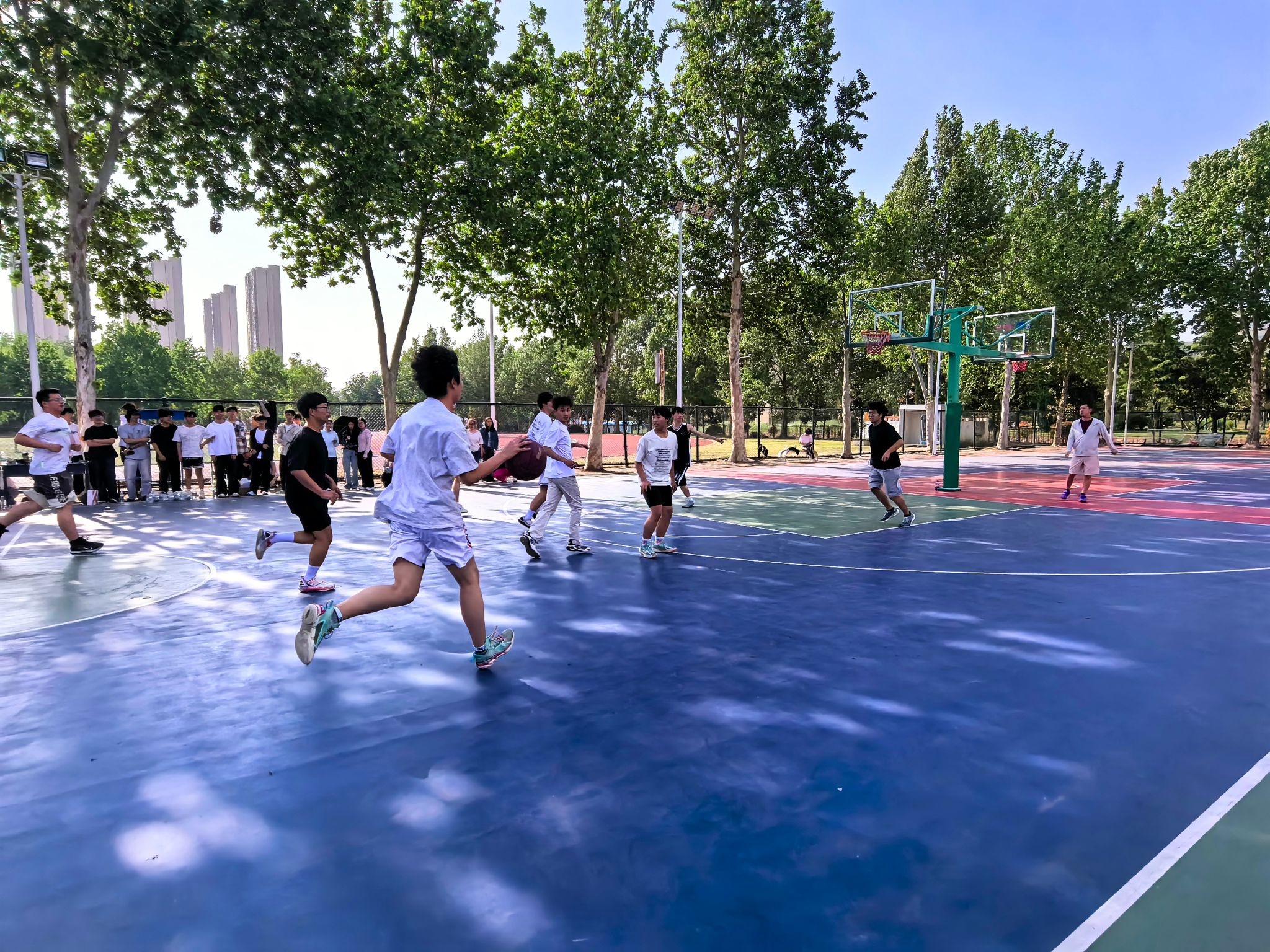 随着裁判一声哨响,比赛正式拉开帷幕。身着不同战袍的电子信息专业与通信工程专业的队员们迅速进入状态。赛场上,双方队员你争我夺,进攻犀利,防守严密,精准的投篮、巧妙的传球、精彩的盖帽接连上演,引得场边观战的同学和老师们阵阵喝彩。新转入学院的同学也积极报名参加,为自己专业篮球队频频拿分,不仅展现了队员们良好的篮球技艺,更体现了团结协作、顽强拼搏的体育精神。