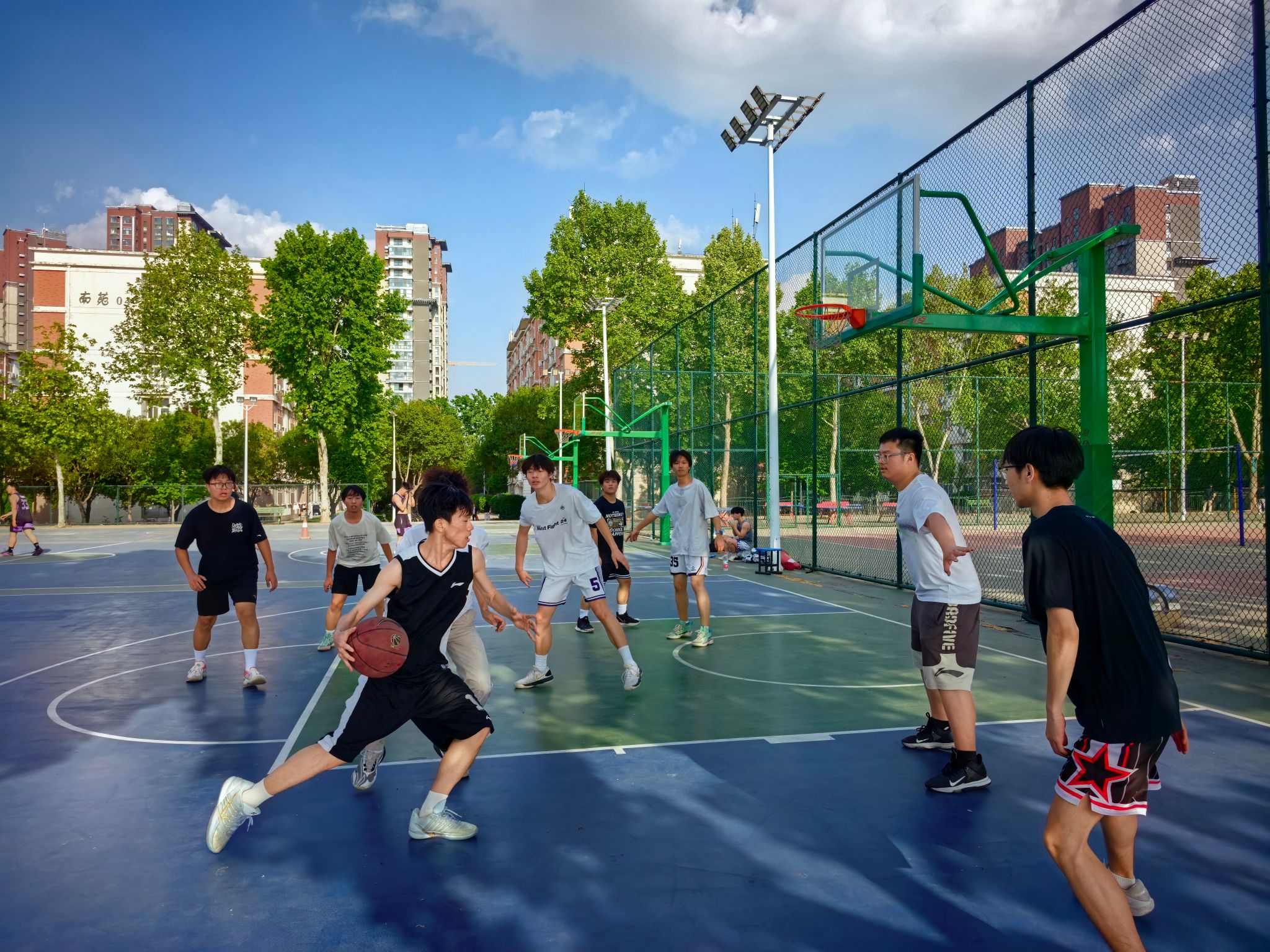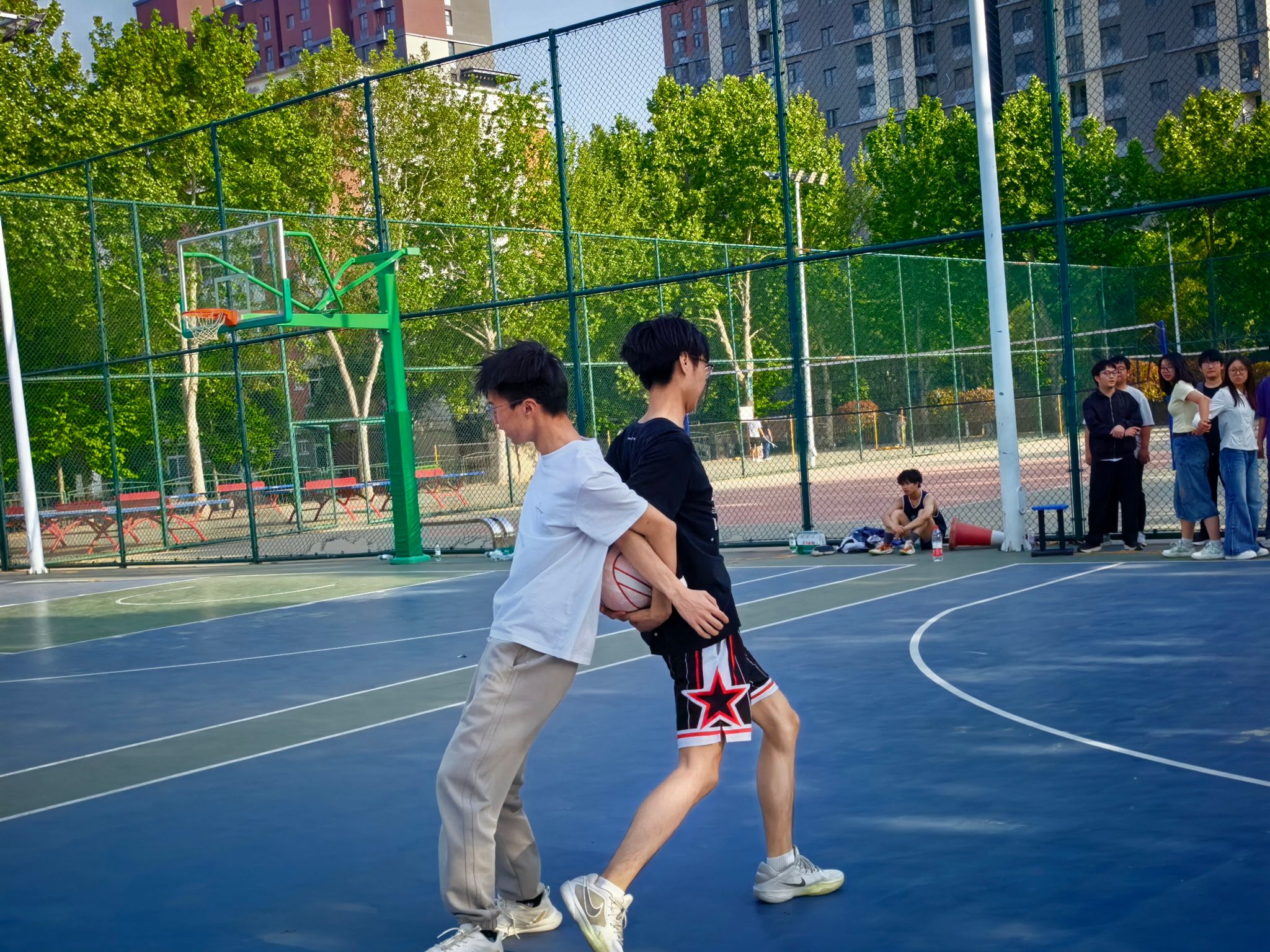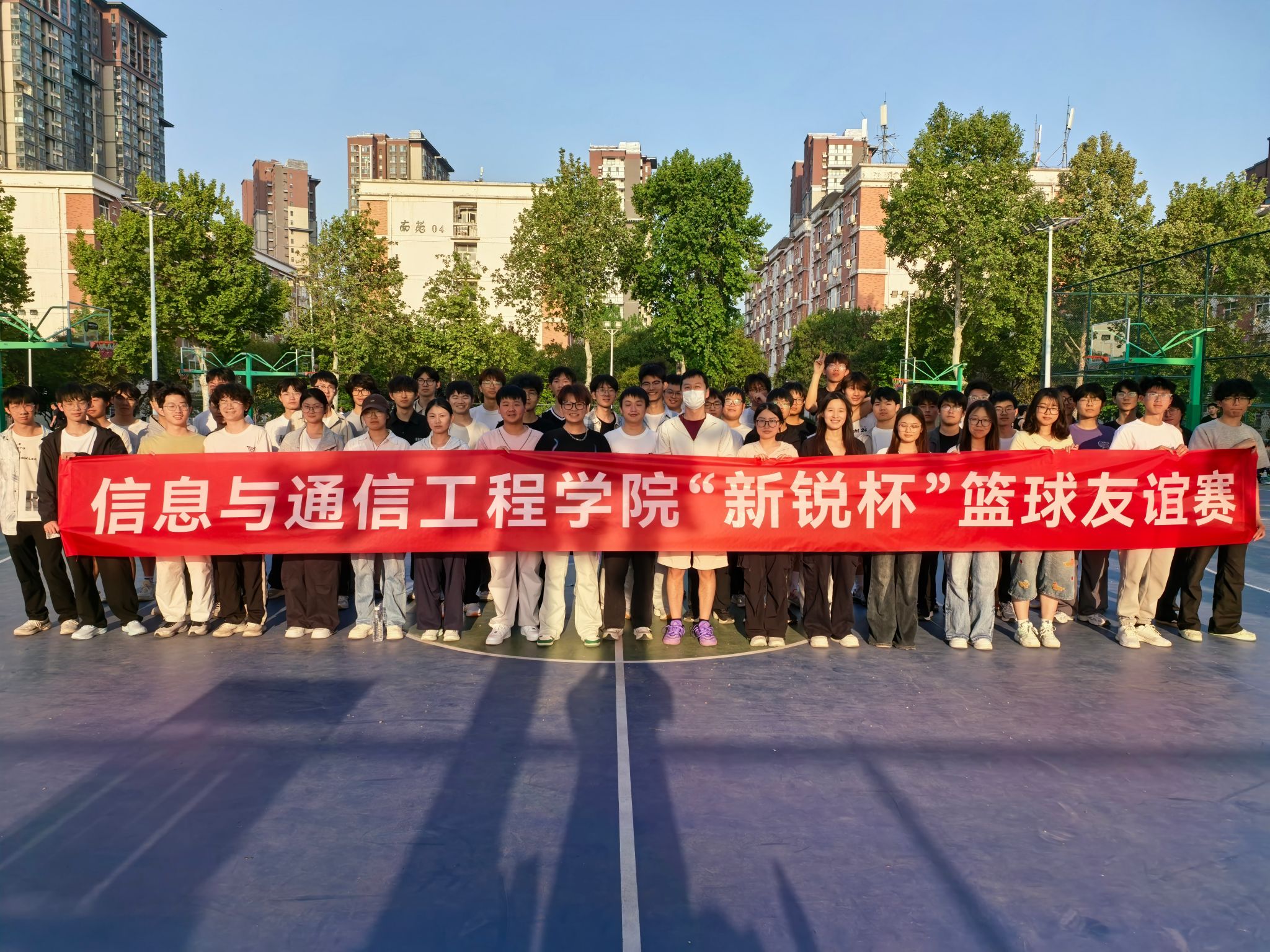 为增强学生身体素质,促进专业间交流,表达对毕业生的美好祝愿,4月17日,具有学院品牌特色的“新锐杯”篮球赛在龙湖校区南苑篮球场火热开赛。本次比赛在学生工作办公室的组织下,设置电子信息专业与通信工程专业的对抗赛环节,并融入趣味比赛与毕业生欢送主题,现场气氛热烈,场下观众不时发出阵阵掌声。